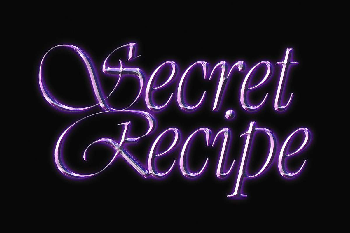 An elegant metallic script with luminous violet tones.