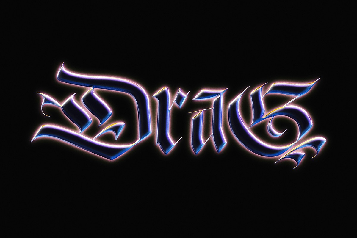 A metallic gothic-style text effect with a holographic twist.