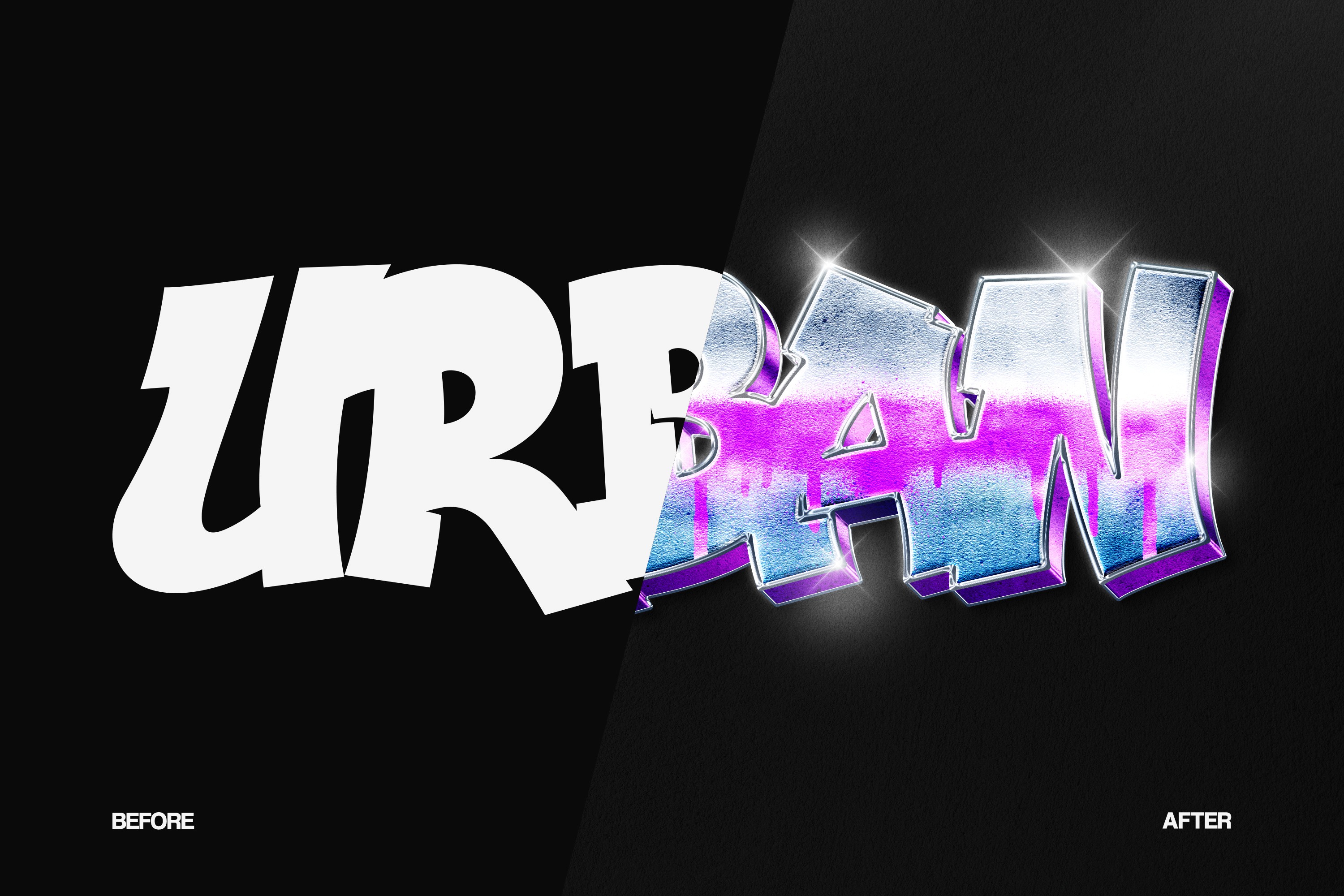 A bold urban text effect inspired by graffiti culture, chrome textures, and vibrant paint drips. Designed to deliver a raw, energetic, and street-driven visual impact.